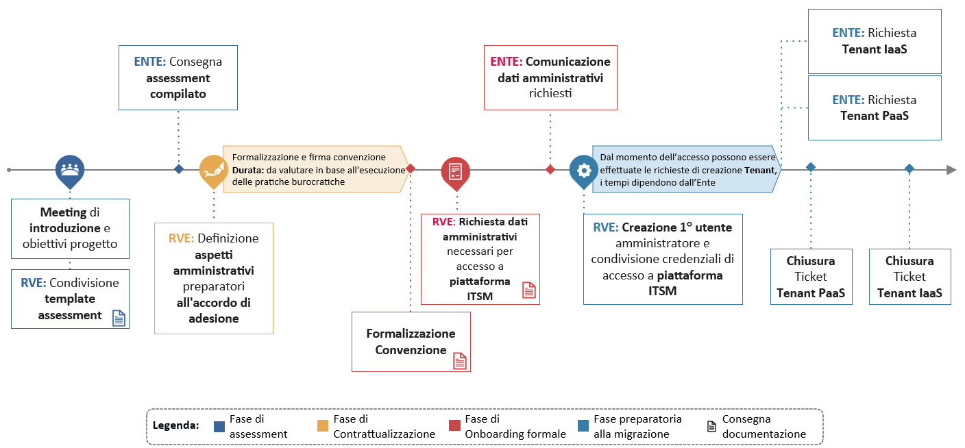 Il percorso di adesione si articola in tappe ben definite, ognuna pensata per accompagnare l’Ente verso un’adozione efficace delle soluzioni offerte. Dalla valutazione iniziale fino alla preparazione alla migrazione, ogni fase è progettata per rispondere alle esigenze specifiche delle amministrazioni coinvolte, garantendo un'efficiente implementazione delle soluzioni previste.